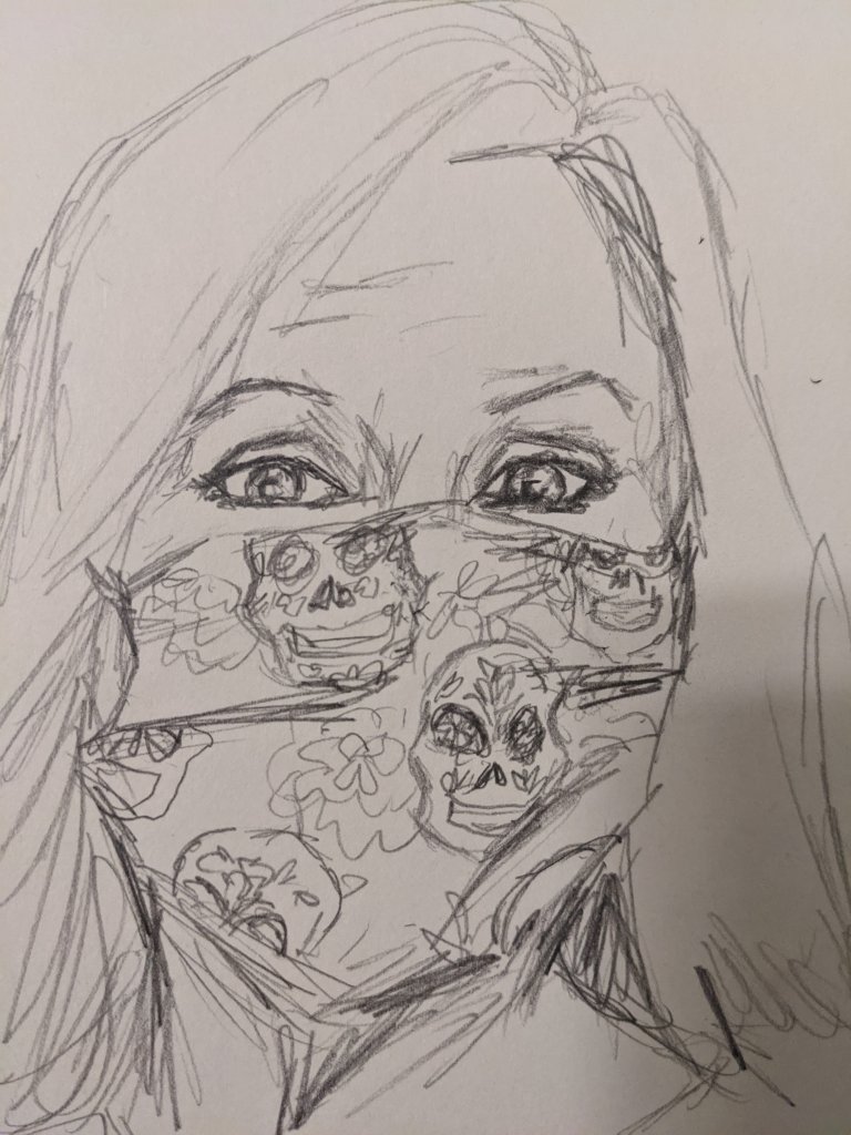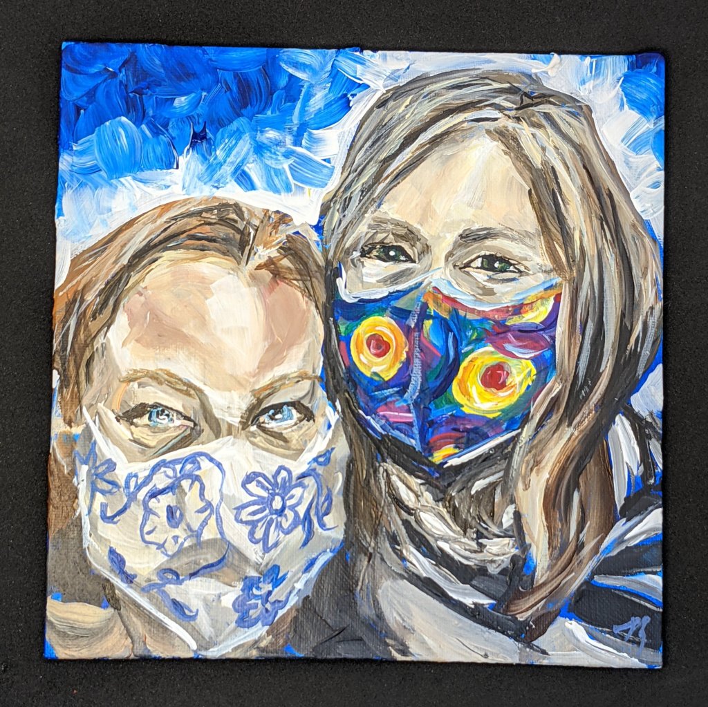 Saturday 1/9 – Lisa & Debbie masks, double dog underpainting
