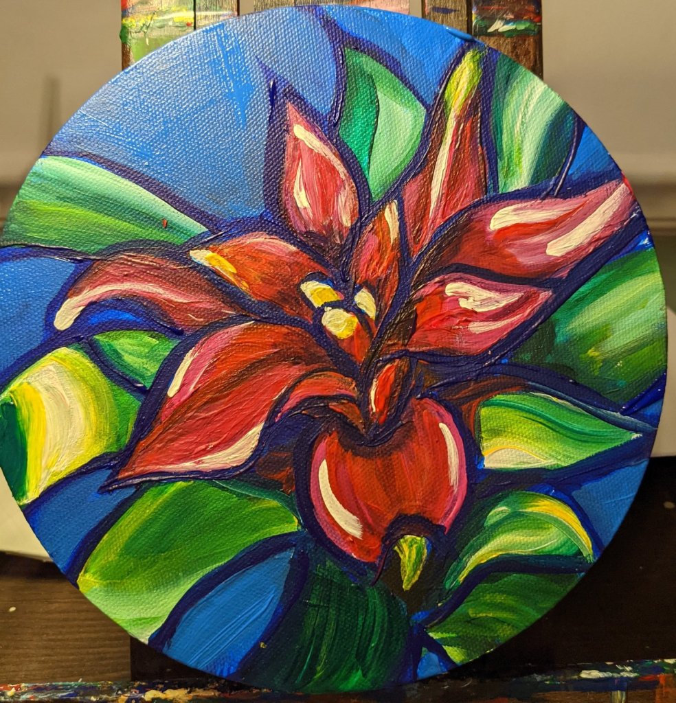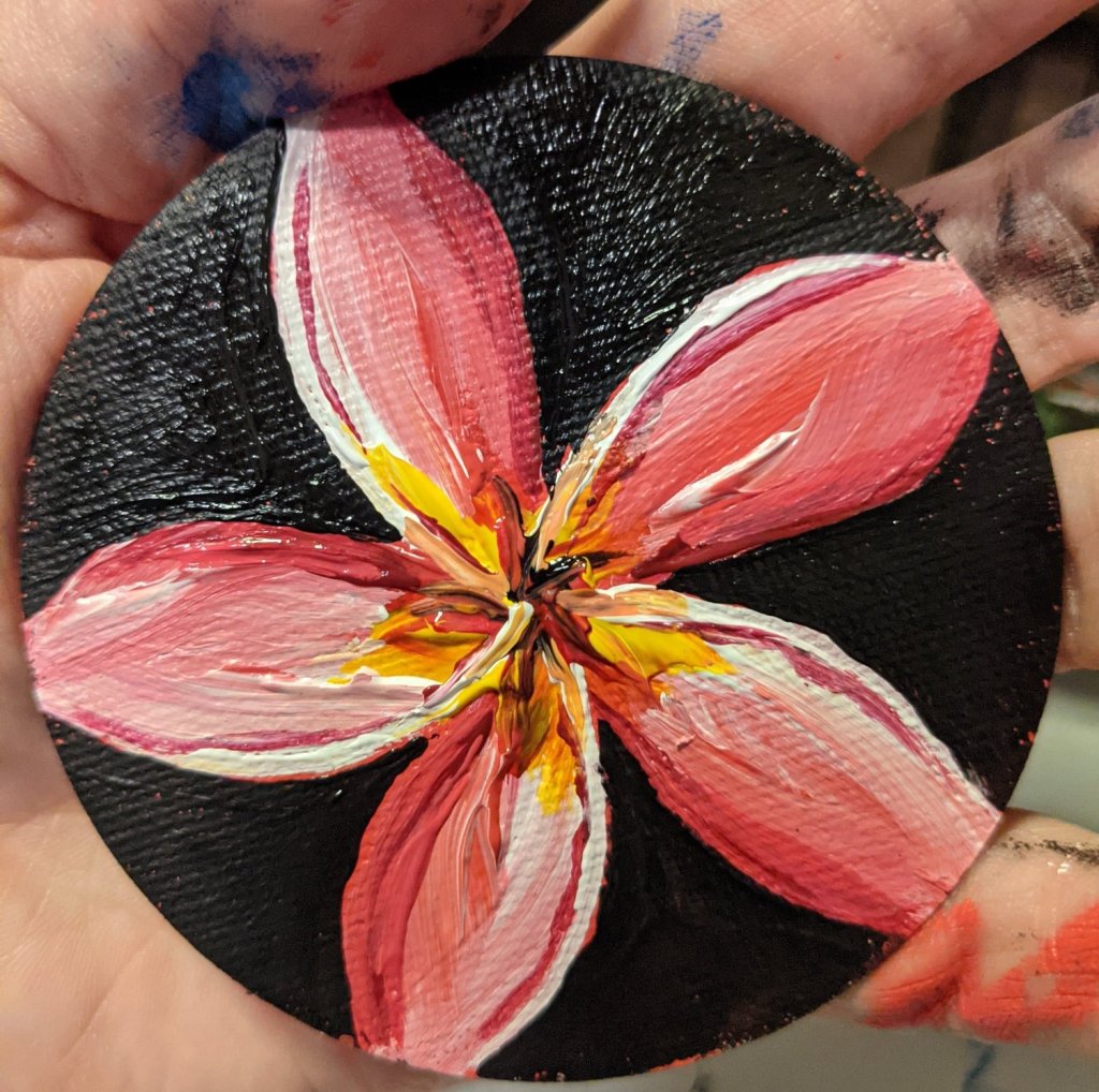 Friday 1/22 – Haiyun, Xcaret flower circle underpainting, pretty mask underpainting