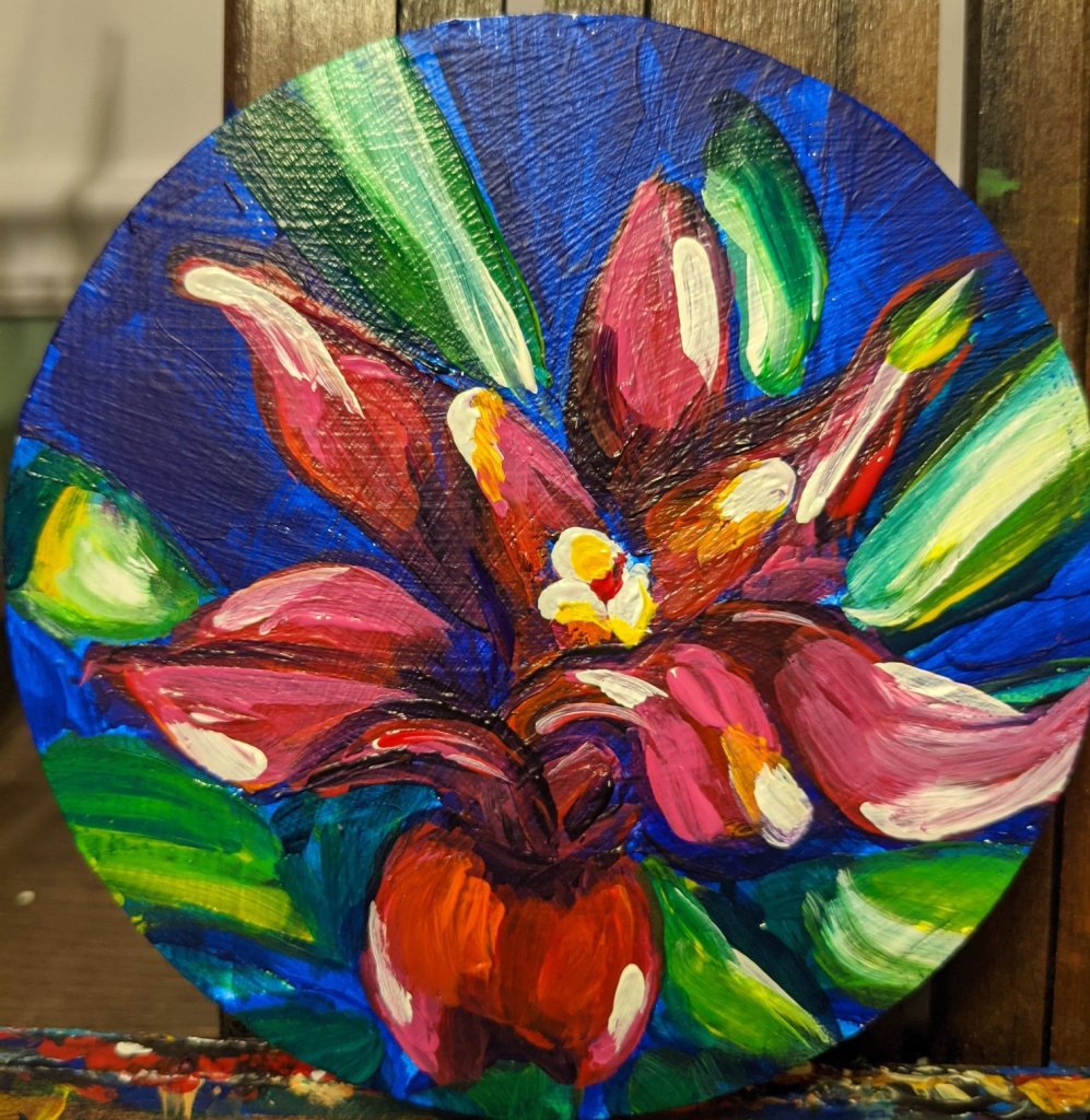 Wednesday 1/27 – Granny, LJ, Franklin, wood bromeliad underpainting