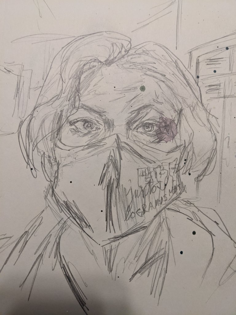 Saturday 2/27 – mask sketches, Dana, Cécile touch-up, Chachalito