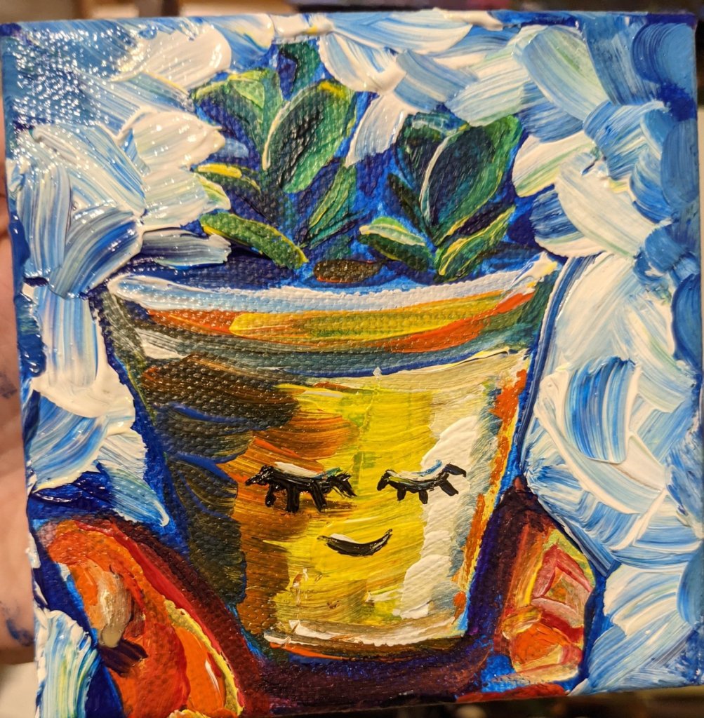 Monday 3/15 – Cécile face sketches 🙁, Debbie sketch, Barbara magnet, smiley succulent