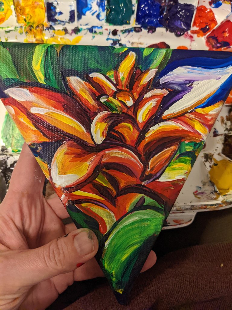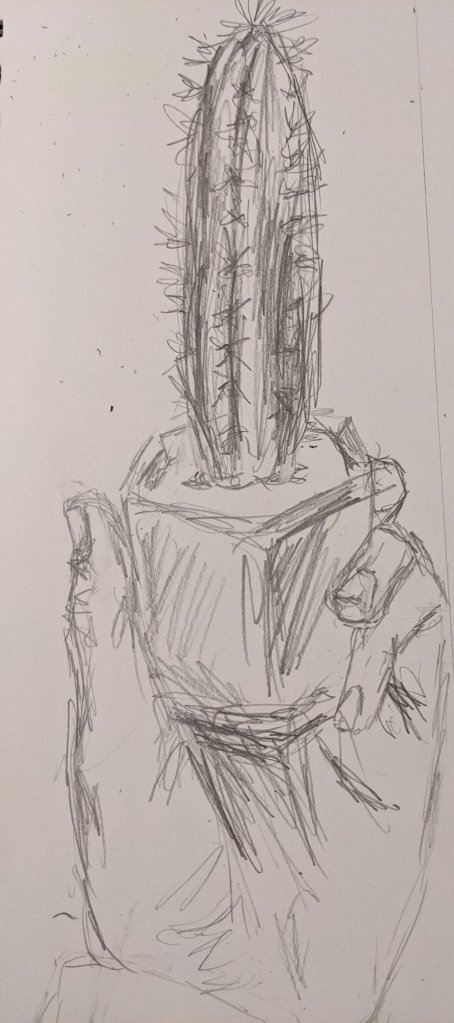 Tuesday 3/16 – Debbie smile sketch, triangle bromeliad with stupid ******* leaf that won’t work