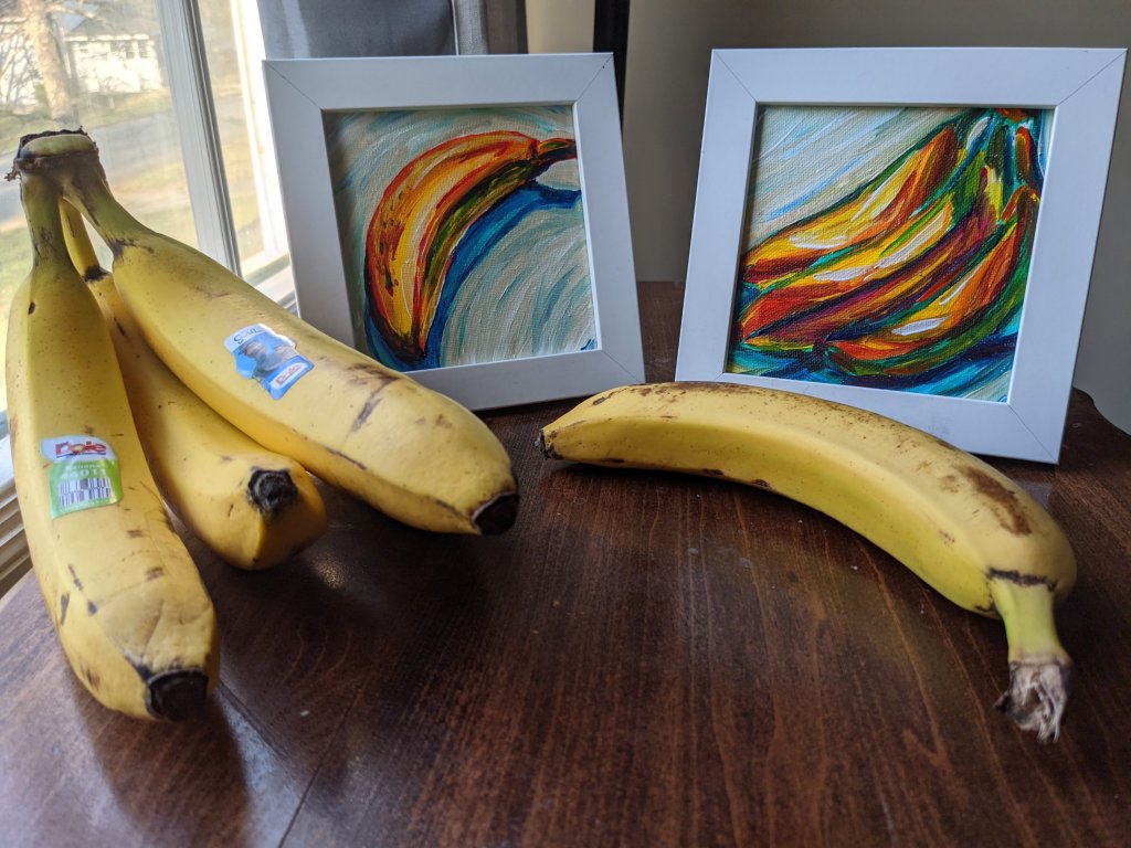 Tuesday 4/6 – April sketches (Lena, squirrel), banana studies