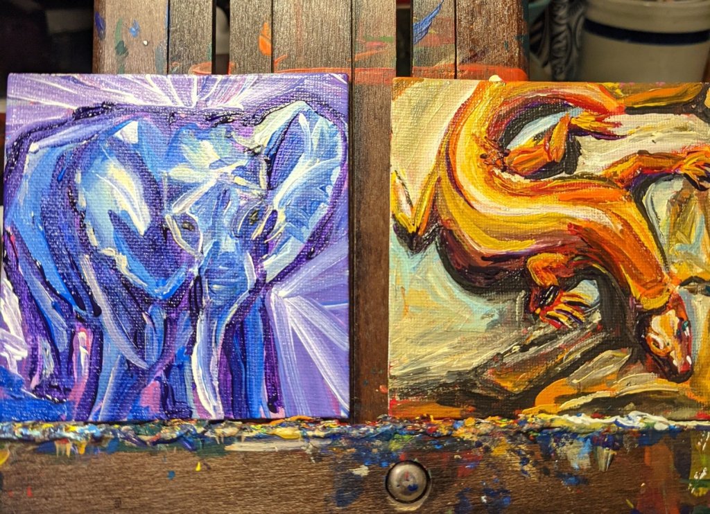 Wednesday 4/21 (now I’m 40) – macaw touch-up, penguin attempt, hippo underpainting, big elephant