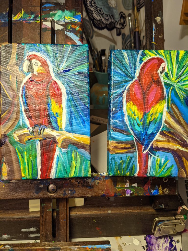 Monday 4/19 – macaw underpaintings, lizard, elephant