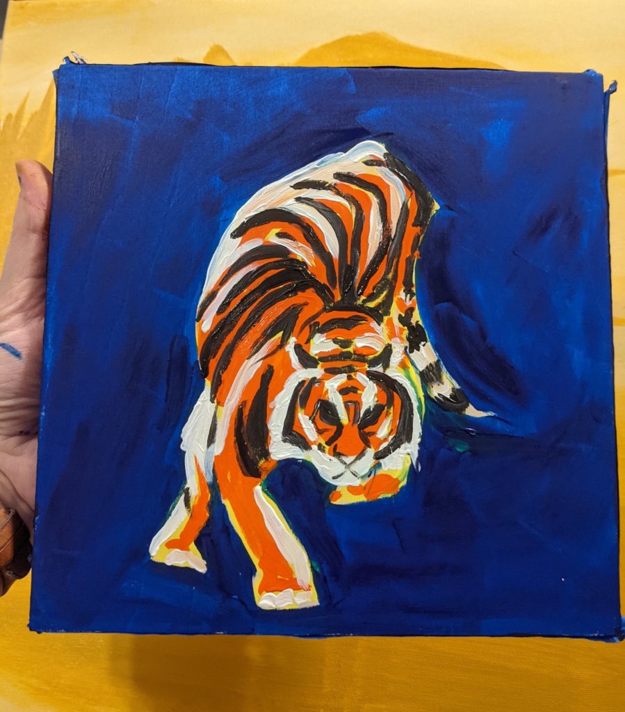 Sunday 5/2 – finish Aline & lemur, underpainting beach & tiger