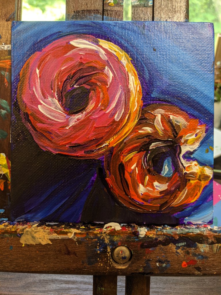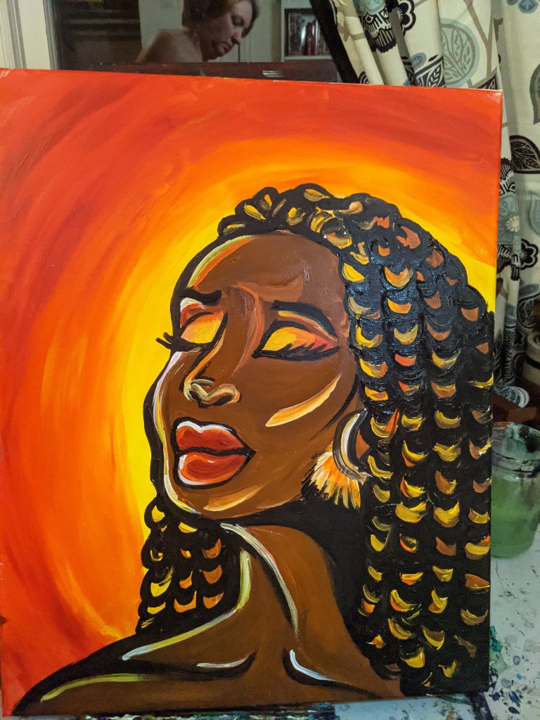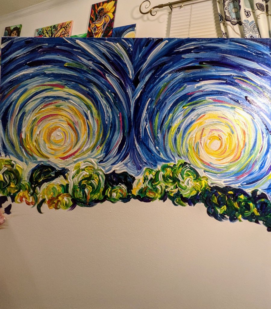 Monday 5/10 – Erika touch-ups, larger Starry Night Lights 20×20, Denita repaint underpainting, WnD