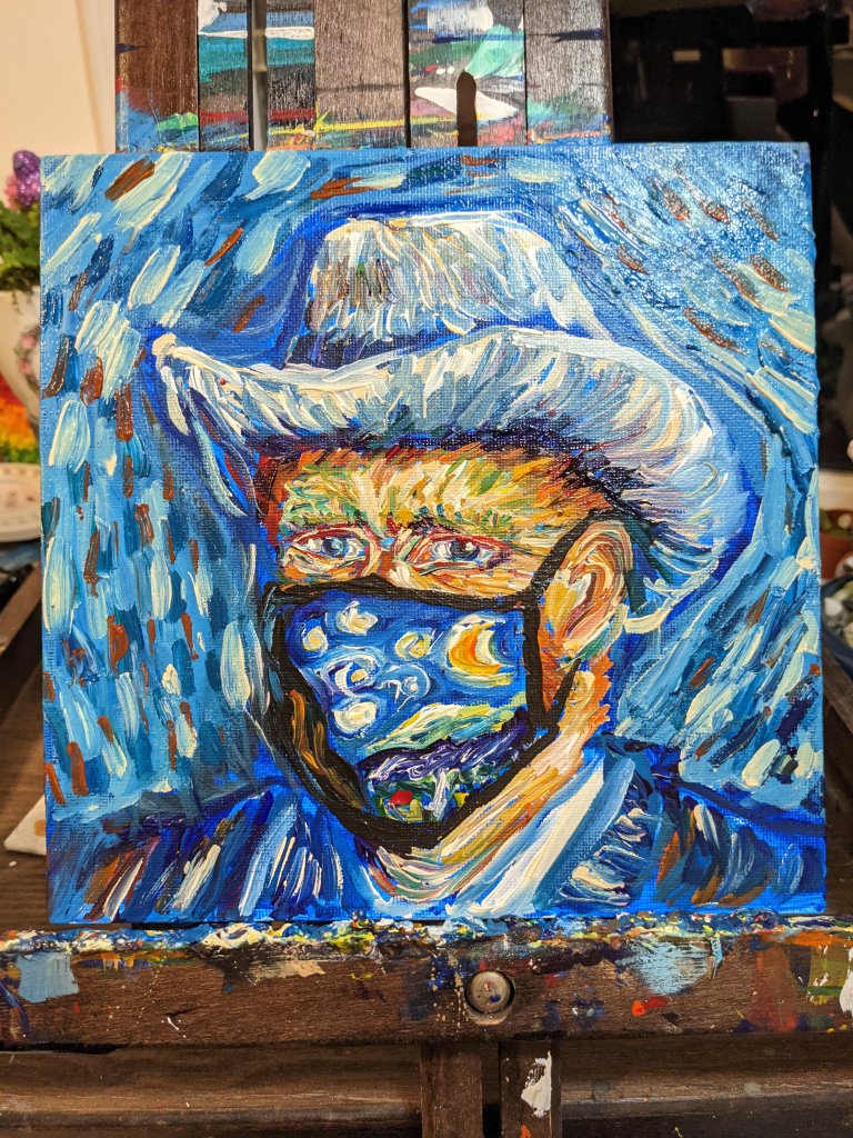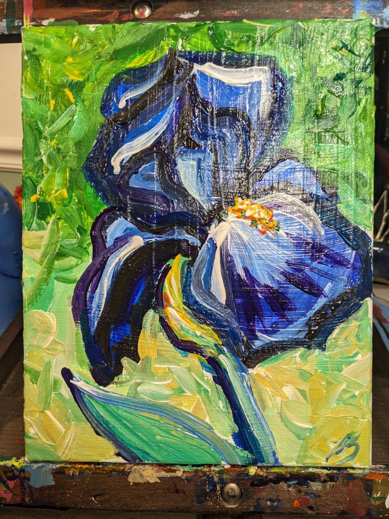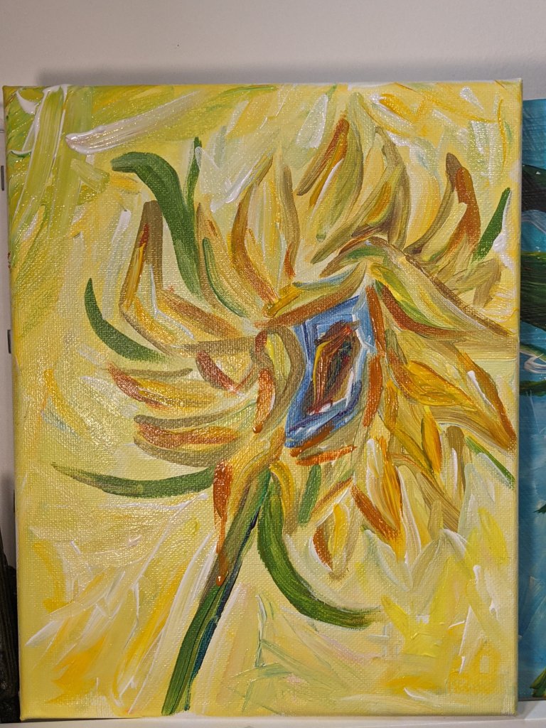 Monday 5/24 – Van Gogh flowers (iris, sunflower), Sun touch-up