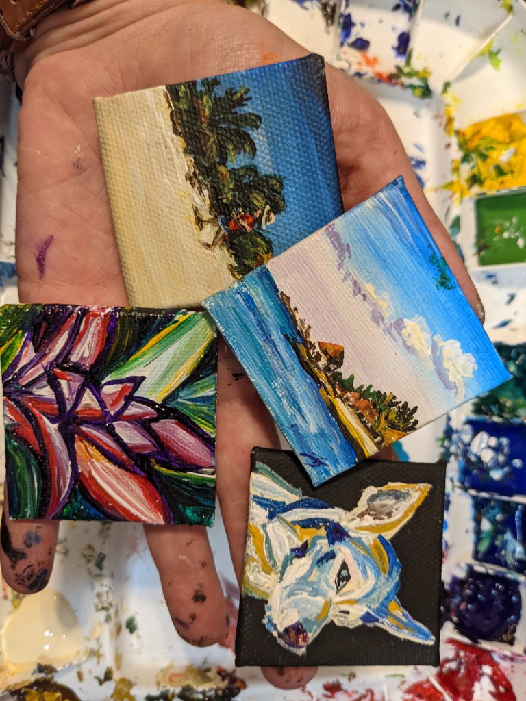 Saturday 5/29 – #PayTheDay minis (2×2 & 3×3 beach, bromeliads, dog)