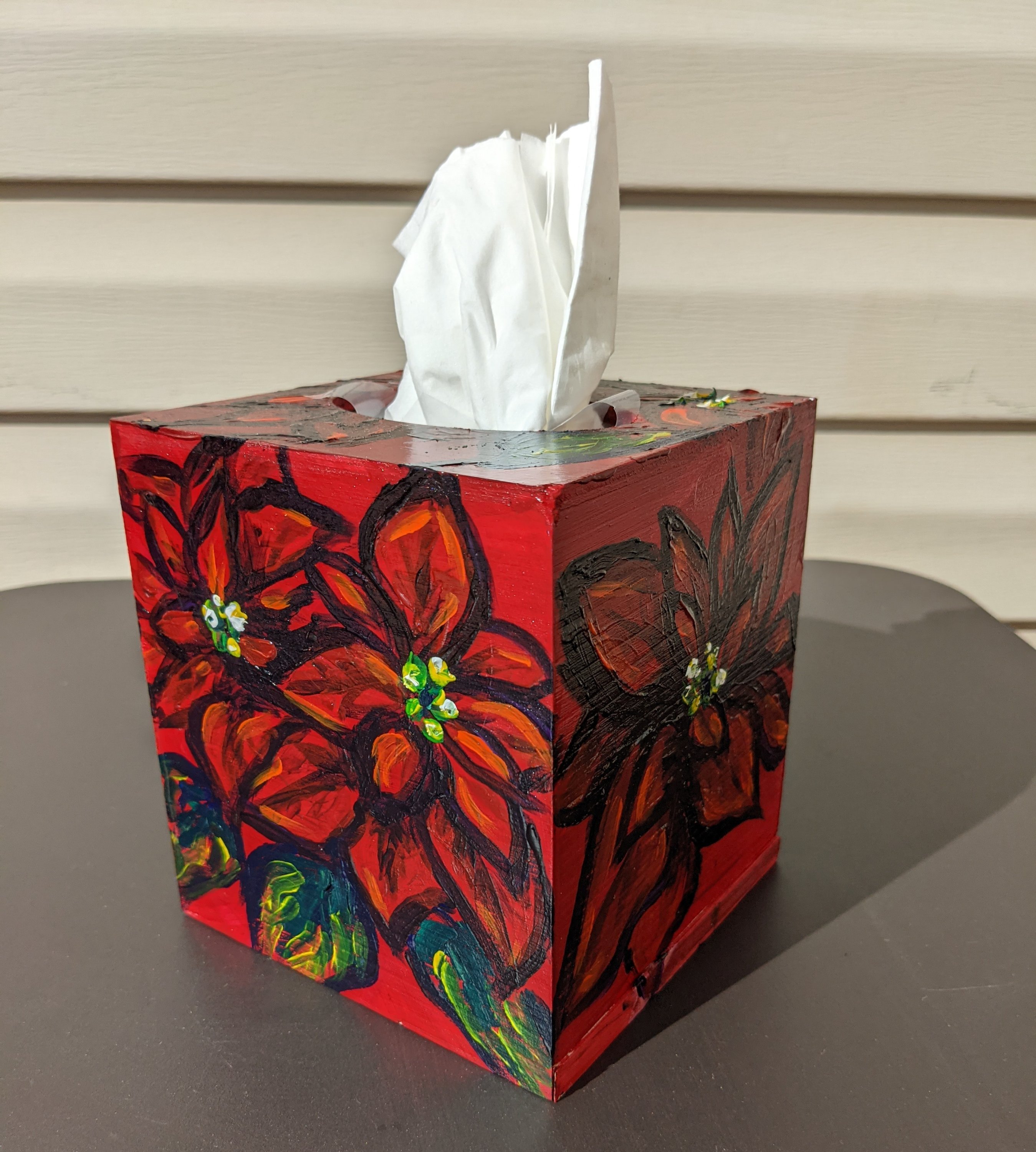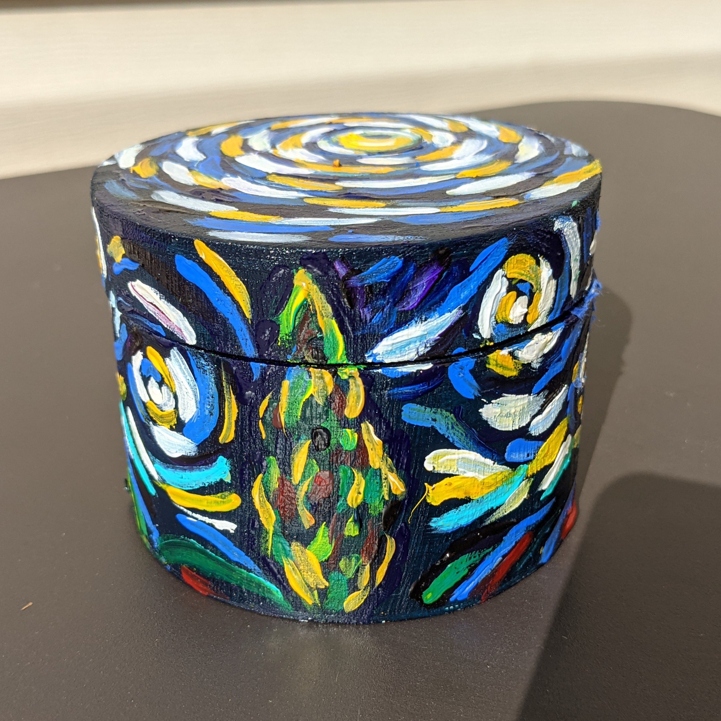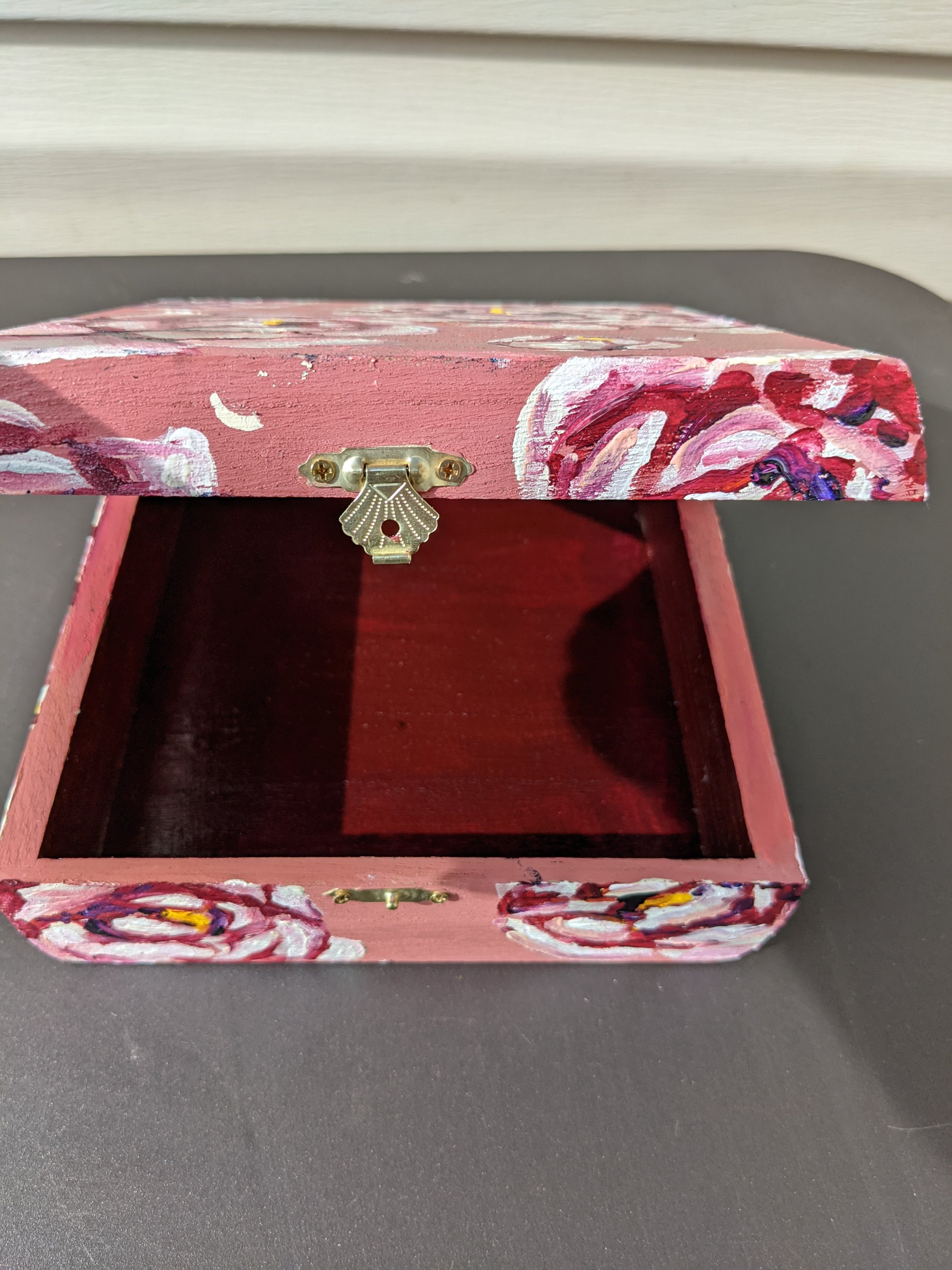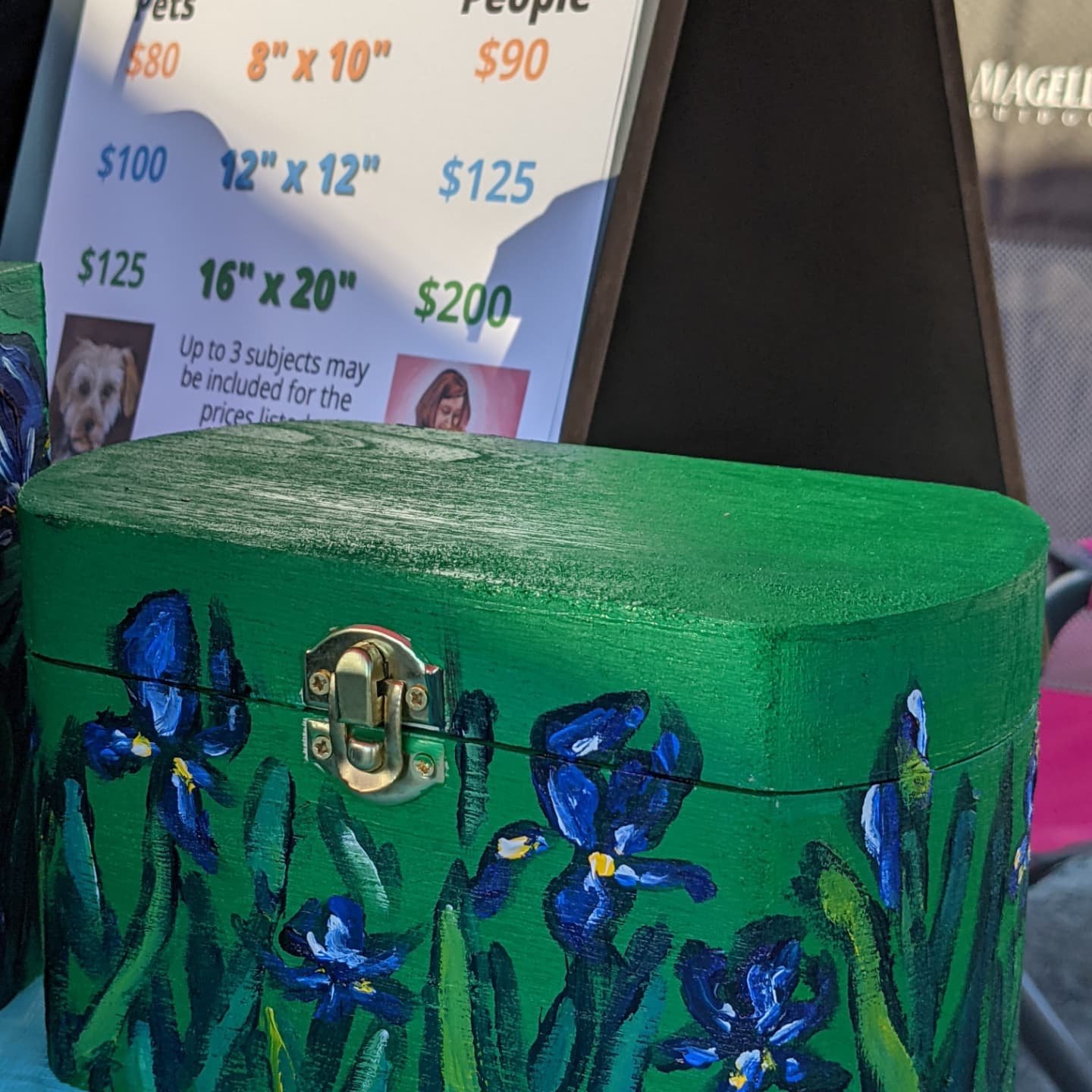 Art should be everywhere, don’t you think? So I have been experimenting with different surfaces like this wooden boxes.