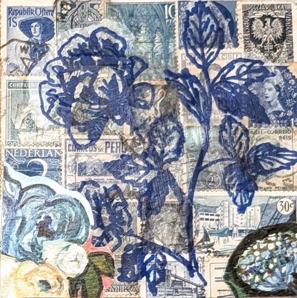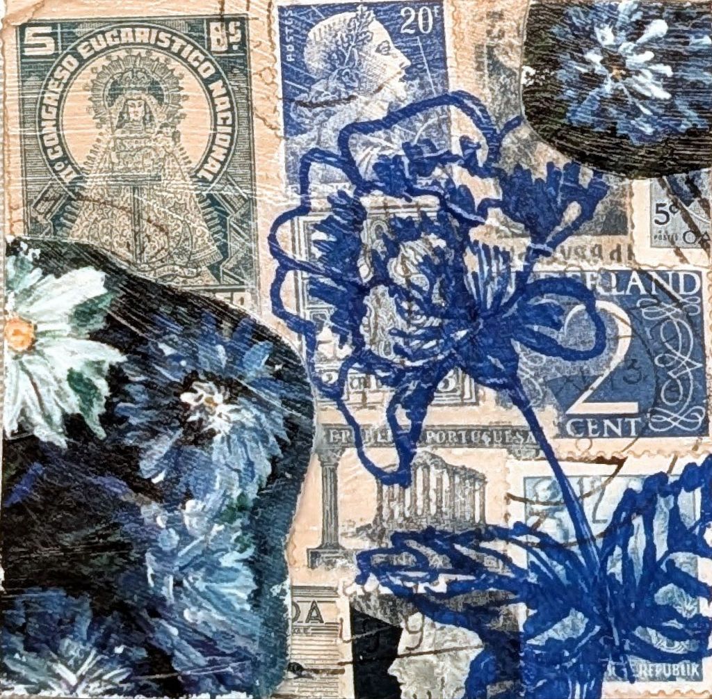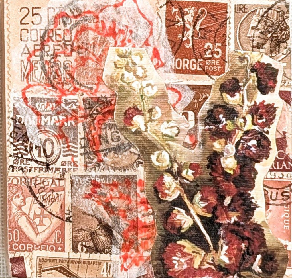 Experiments with different media and techniques, including pieces from workshops with Catherine Kanvik and Trish Boyles as well as antique stamps from my father’s collection.