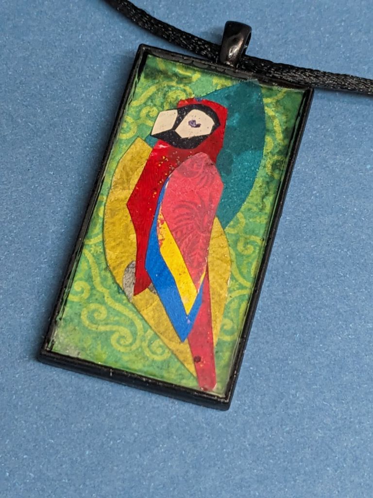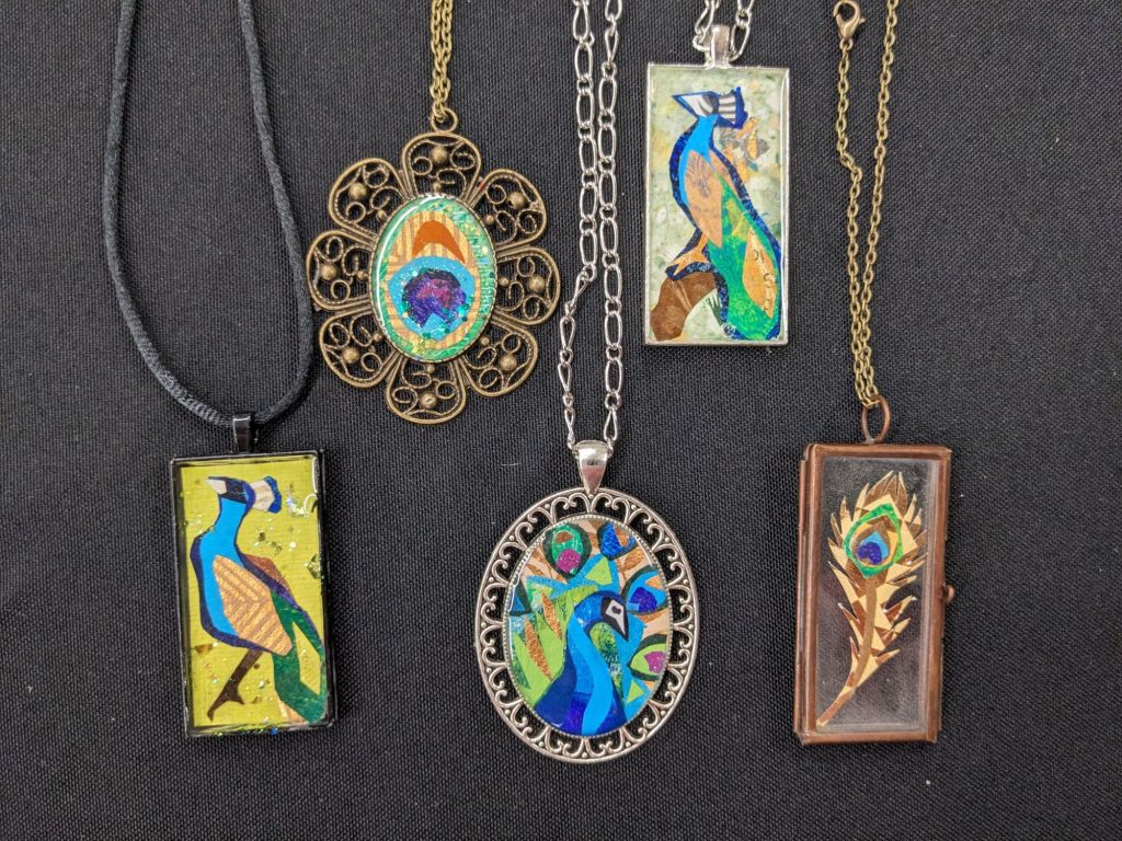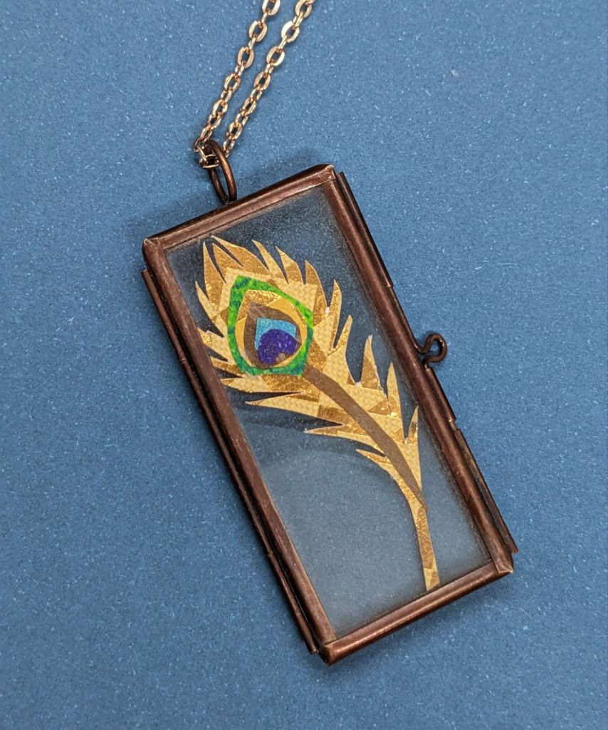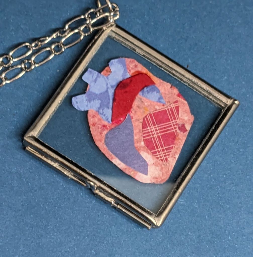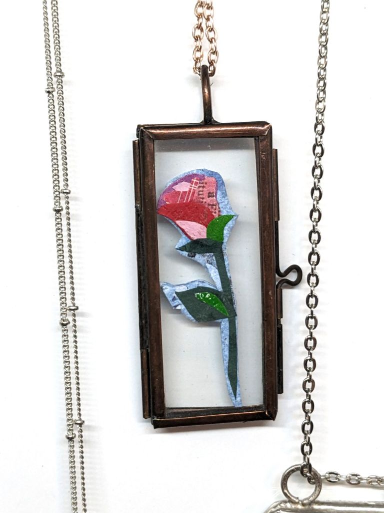 In an effort to share my art beyond wall space, I started creating tiny collages that fit into glass lockets and cabochon settings. I want collectors to be able to hold onto their art and take it with them, displaying beyond private wall spaces.