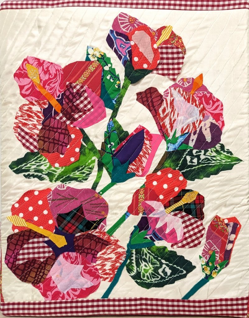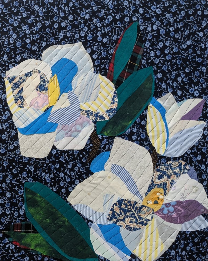 These flowers are dedicated to the moms in my family, and they represent how their influences entwine into what I understand motherhood to be. Each flower is created from a mix of materials from clothes from two or more women from my family: